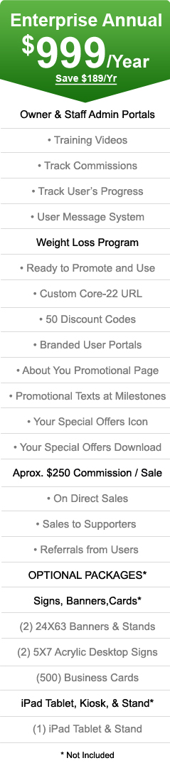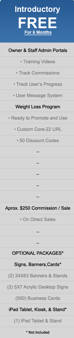 Offer Core-22 to your staff and members for 30-days. If they don't love the program and their results, simply return the promotional material in good condition for a full refund minus any commissions already paid.