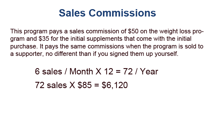 Commissions based on the sale of the program and two to three months of supplements