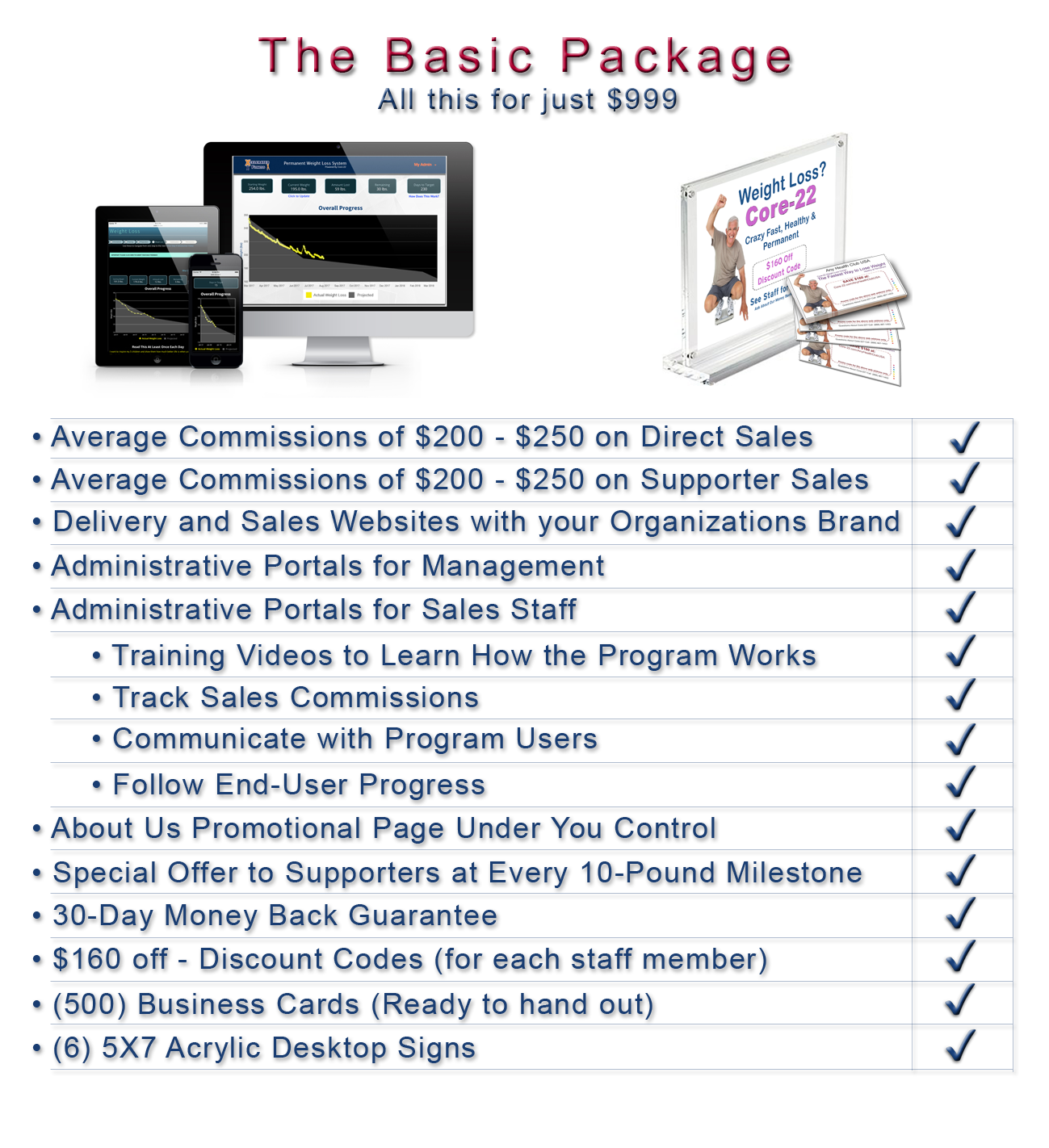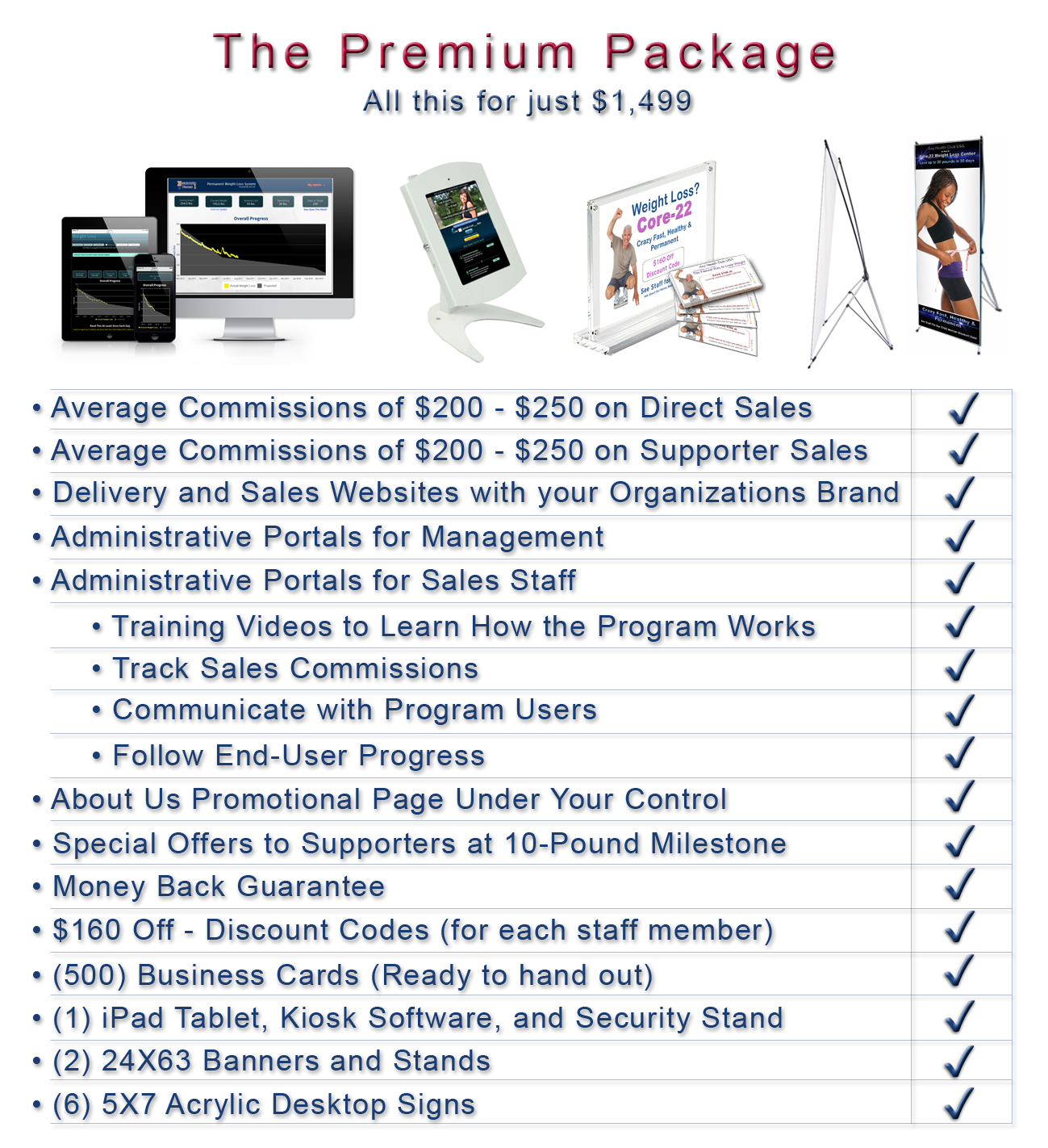 Basic programs don't have the marketing/promotional materials that tell others you have a weight loss solution. If you have a counter, room for a banner or two and a few small signs, the Premium Program is a better choice because it will quickly pay for itself.